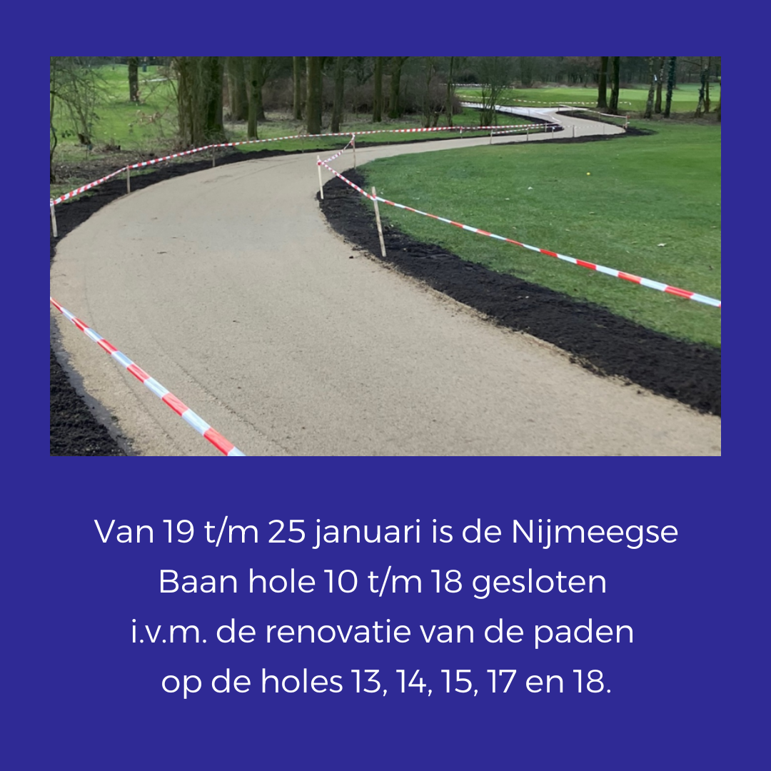 15-01-2026Vanaf 19 tm 25 januari is de Nijmeegse Baan hole 10 tm 18 gesloten.